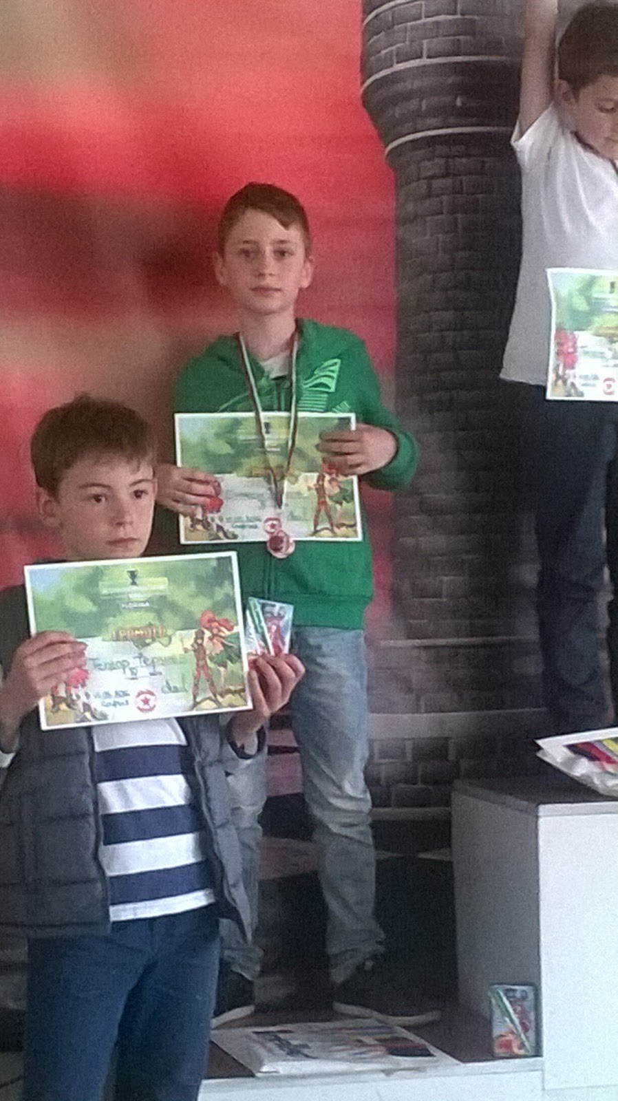Голяма въртележка стана накрая в класирането, разликата между децата на върха беше по 1 пункт в личните им коефициенти. От една страна Божидар победи в прекия двубой, но не взе първото място, от друга Божидар имаше служебна точка в първия кръг, от трета - и трите деца имаха по 5 точки накрая - има го и това, важното е че Симчо този път беше съсредоточен, не правеше глупави грешки и недовижданията му бяха сведени до минимум. На мен ми се искаше да останем и следобед, да играе в турнира за втори клас, предполагам, че нямаше да има много деца, но още е малък, много шах щеше да му дойде и да почне да прави глупости в последните кръгове. Както и да е, лятото ще има разни летни школи и турнири, ще го пусна и там.